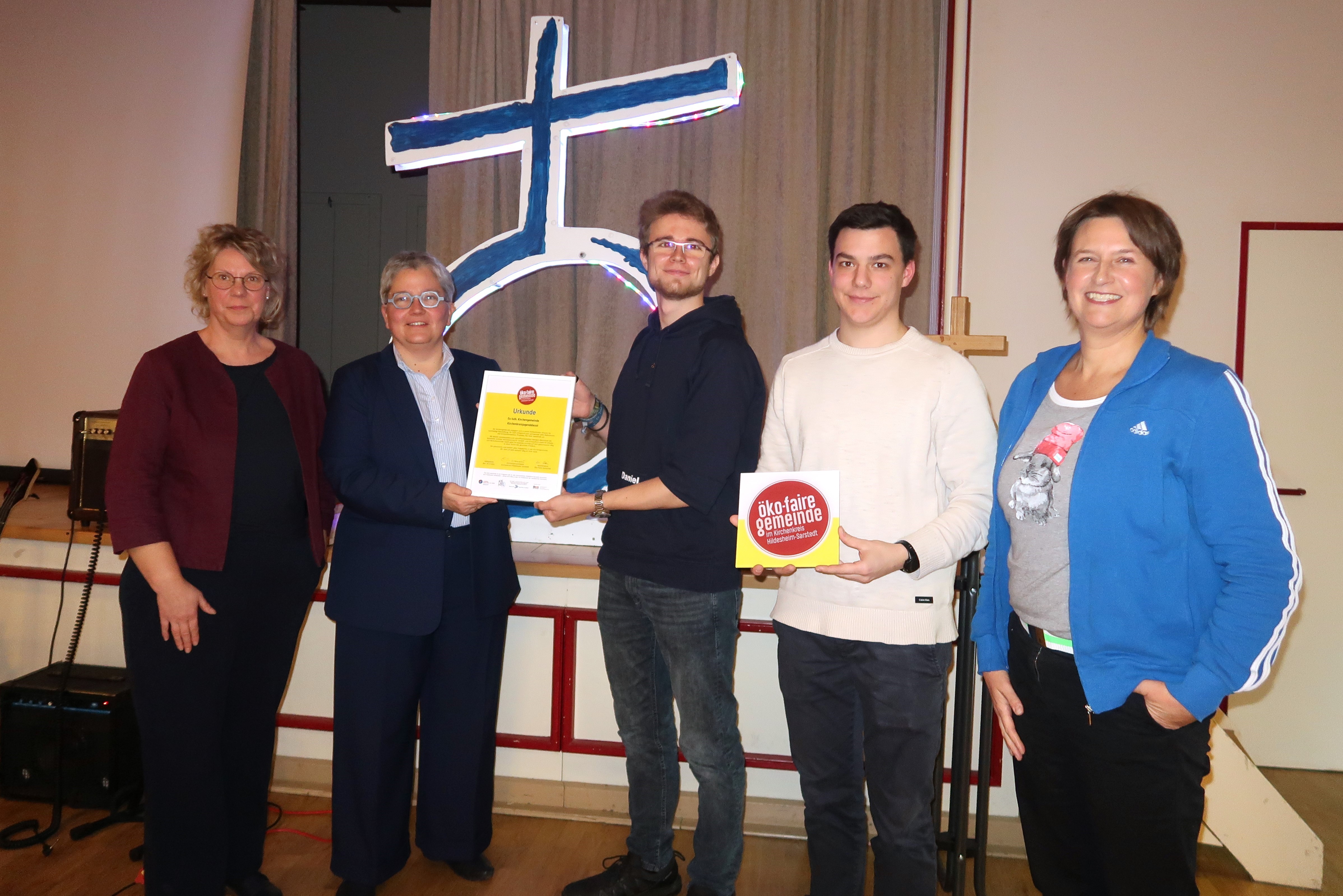 Angesichts weltweiter Herausforderungen durch Klimawandel und ungerecht verteilte Ressourcen überhaupt in Bewegung zu kommen, anstatt in Tatenlosigkeit zu verharren, darauf komme es an, sagte Michaela Grön bei der Übergabe. Sie leitet den Hildesheimer Friedensort Lernen eine Welt zu sein, einen von acht Friedensorten der Landeskirche Hannovers. „Aufgeben ist für die evangelische Jugend keine Option“, betonte Diakonin Katrin Bode. Auch in den Liedern der Kirchenband You-Go mit Diakon Harald Breitenfeld und Sängerin Dorothée Mahler ging es um Hoffnung und Dank für die Schöpfung.