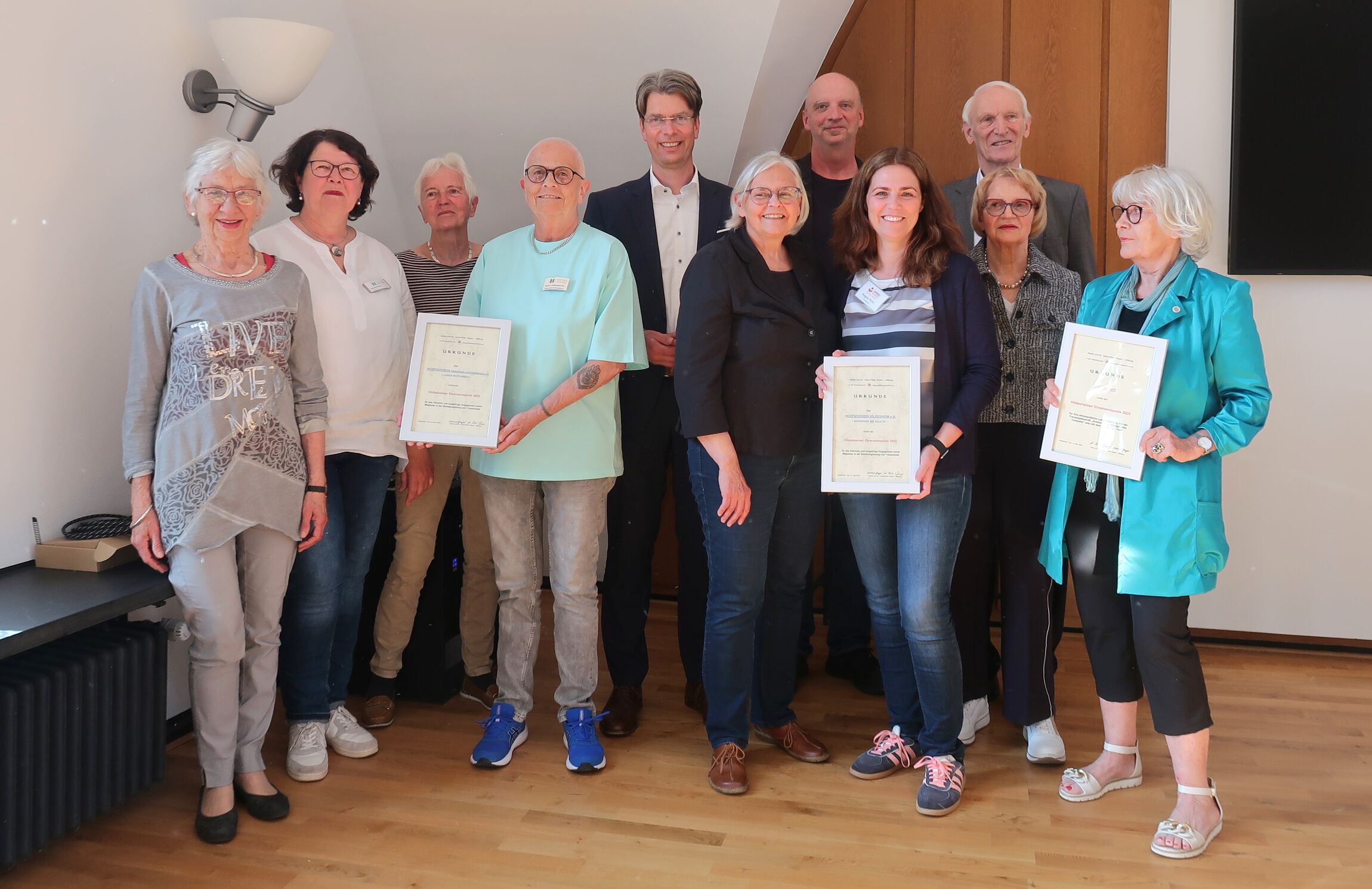 Bei den Nominierungen seien immer wieder auch Personen genannt worden, die sich in einem der Hospizvereine engagieren, sagte Dr. Hans-Peter Geyer bei der Preisverleihung im Rathaus. Anstatt Einzelne herauszuheben wollte die Jury aber lieber die Vereine als Einrichtungen und damit alle dort Tätigen auszeichnen.