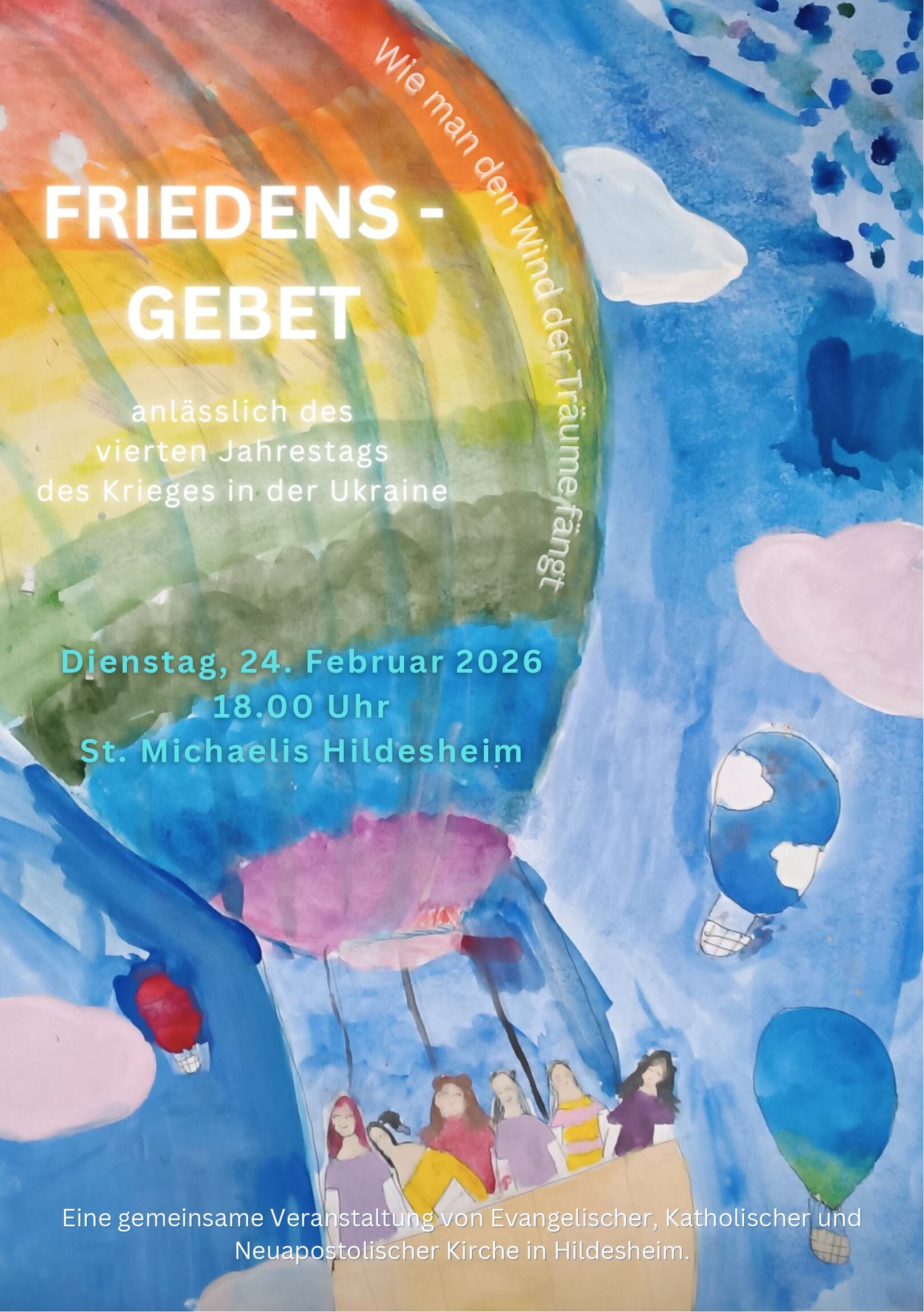 Am Dienstag, 24. Februar 2026, um 18.00 Uhr laden die Evangelische, Katholische und Neuapostolische Kirche in Hildesheim zu einem ökumenischen Friedensgottesdienst in St. Michaelis ein. Anlass ist der vierte Jahrestag des umfassenden Angriffskrieges Russlands gegen die Ukraine.