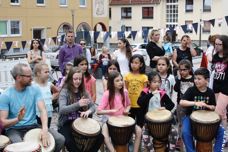 Die SchülerInnen der Grundschule Alter Markt lassen einen Trommelwirbel anheben. Foto: Wanja Neite