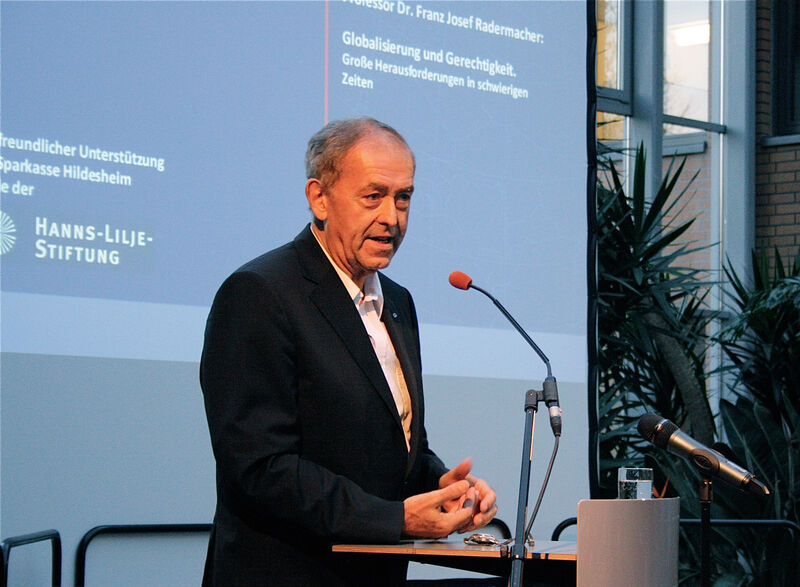 Hildesheim. Der Mensch sei „nicht so viel anders als der Schimpanse“, wenn man die genetischen Codes vergleiche, stellte Prof. Franz Josef Radermacher fest. Er fügte trocken hinzu: „Vielleicht ist der Schimpanse noch das Beste an uns.“ Wer nach diesem Auftakt hoffte, im Laufe des anderthalbstündigen Vortrags noch ein bisschen Licht am Ende des Tunnels gezeigt zu bekommen, wurde enttäuscht. Die Chance, dass die Menschheit noch die Kurve kriegt, um sich und die Erde zu retten, schätzt Radermacher auf 35 Prozent.