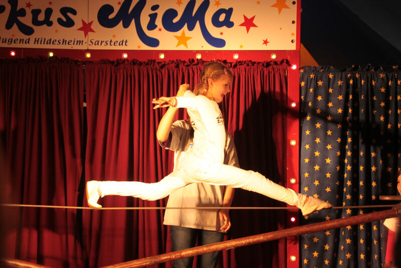 Nach dem Familiengottesdienst und einer kleinen Umbauphase erschall der Schlachtruf der Projekttage laut im Kirchraum: "MiMa – olé!" Darauf folgte eine kurzweilige Zirkusvorstellung, in der die Kinder ihre neuen Fähigkeiten präsentierten. Durch die Vorstellung leiteten zwei Direktoren, die jede Nummer ansagten. Die Clowns August und Beppo brachten das Publikum zum Lachen. Die Tanzsäcke heizten zu Beginn die Stimmung auf. Die "Seilinos" zeigten ihr Können auf dem Hochseil. "Die fantastischen Höhenflieger" jonglierten, und die drei Zauberer ließen das Publikum staunen. Die "Feuerleitern" zeigten ihre Akrobatik auf vier Leitern. Den Abschluss bildeten "Los Pedalos", die mit ihren Einrädern durch die Manege flitzten.