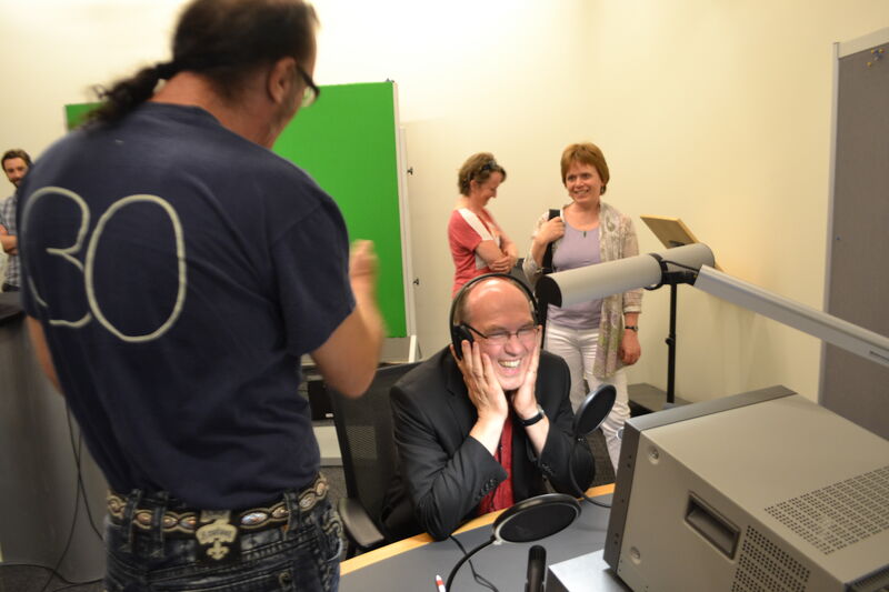 Zusammen mit den Lektorinnen und Lektoren besichtigte die Kirchenkreiskonferenz das Landsfunkhaus des NDR am Maschsee. Bei der Führung durch die verschiedenen Aufnahmestudios wurde Superintendent Helmut Aßmann kurzerhand als Nachrichtensprecher für die Vertonung eines Beitrags für "Hallo Niedersachsen" angestellt. "Der macht das richtig gut - der kann sich bewerben!" meinte der Aufnahmetechniker zu den Mitgliedern der Kirchenkreiskonferenz, die das Ganze im Regieraum verfolgten.