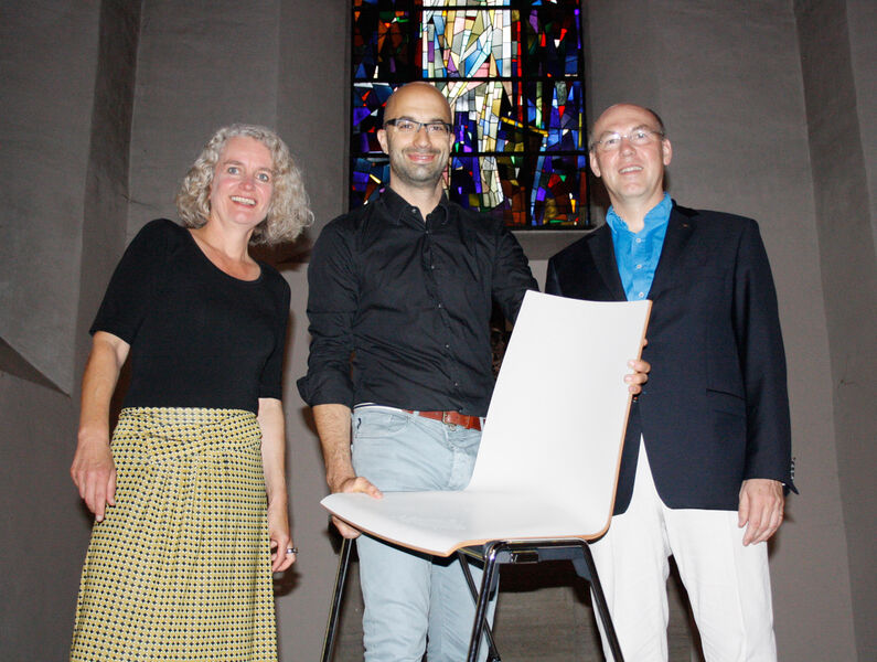 Anja Krauß, Dirk Brall und Helmut Aßmann stellten das Programm des neuen Literaturhauses vor – und den ersten von 200 weißen Stühlen. Foto: Neite