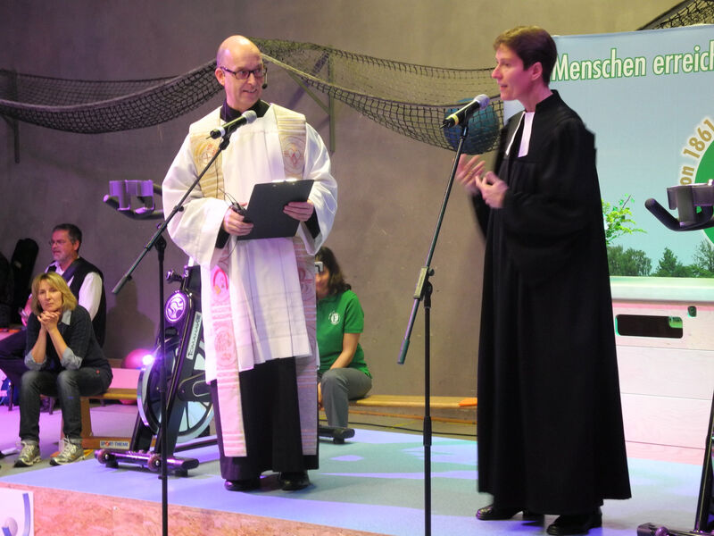 Pfarrer Romanus Kohl und Pastorin Meike Riedel - noch ganz klassisch in liturgischen Gewändern.