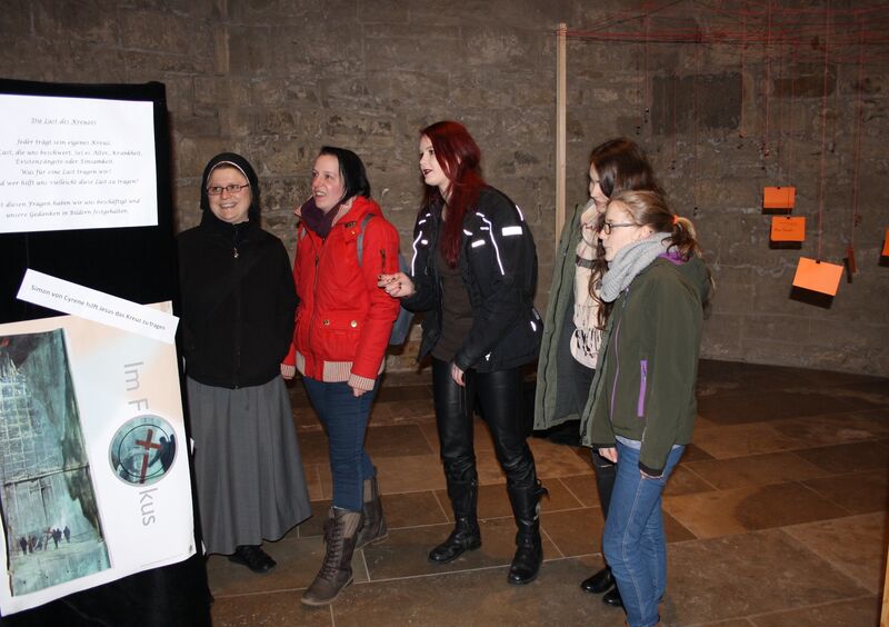 Es ist der 57. Jugendkreuzweg bundesweit, auch Hildesheim macht seit Jahrzehnten mit. Zu den besten Zeiten gingen hunderte von Jugendlichen mit, die Stationen waren in der Innenstadt verteilt. Ende der 80er Jahre ließ das Interesse nach, schließlich wurde die Aktion eingestellt. 2009 wagte der evangelische Kirchenkreisjugenddienst Hildesheim-Sarstedt den Neustart mit dem Konzept einer interaktiven Ausstellung, deren Stationen von Schulklassen, KonfirmandInnen und anderen Jugendgruppen gestaltet werden. Bilder ungewöhnlicher Kreuzwege liefern die Vorlagen, diesmal stammen sie aus der Stiftskirche St. Materniani et St. Nicolai in Bücken.