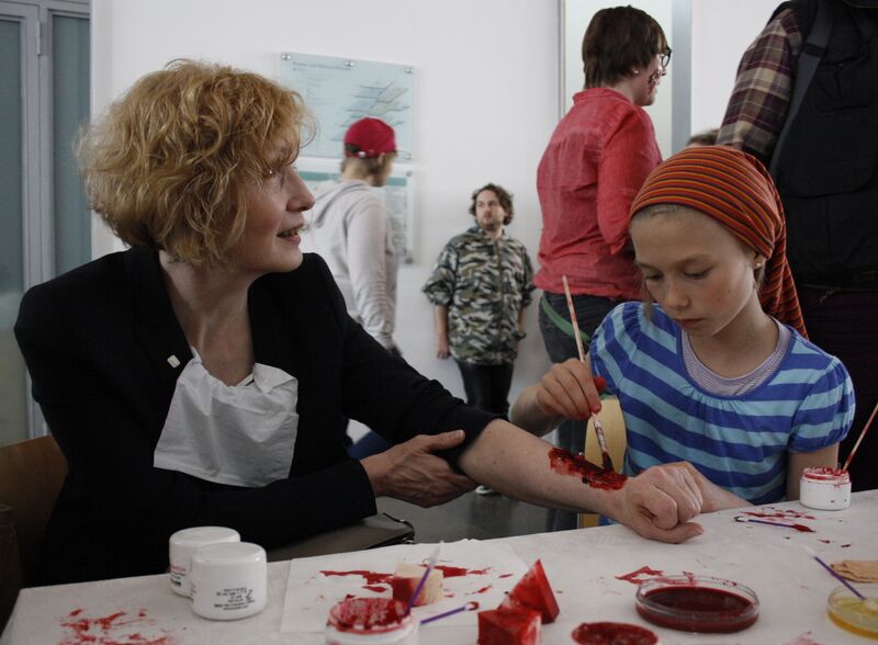 Hildesheim. Die künstliche Wunde, die die zehnjährige Maximiliane sorgfältig auf Judith Hoffmanns Unterarm anbringt, wird eine besonders schlimme. Latex, „Fresh Scratch“ und „Wundenfüller“, Schicht um Schicht mit dem Pinsel aufgetragen. Sehr realistisch sieht das aus. Aber das soll es ja auch. „Stigma to go“ heißt das Motto der Aktion, zu der die Diakonie Himmelsthür und das Roemer- und Pelizaeus-Museum aufgerufen haben. „Gönnen Sie sich ein Stigma und fühlen Sie nach, wie es ist, ausgegrenzt zu sein“, hatte Judith Hoffmann, die Regionalgeschäftsführerin der Diakonie Himmelsthür, vorher einladend in die große Schar der Gäste gerufen. Jetzt wird sie selbst zur Betroffenen.