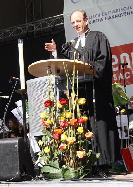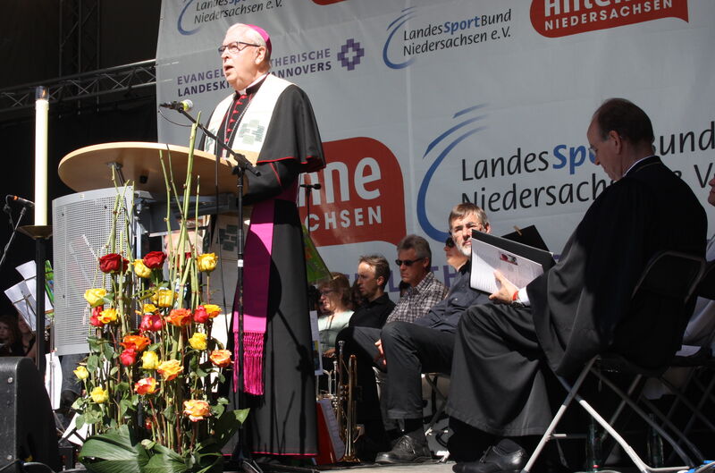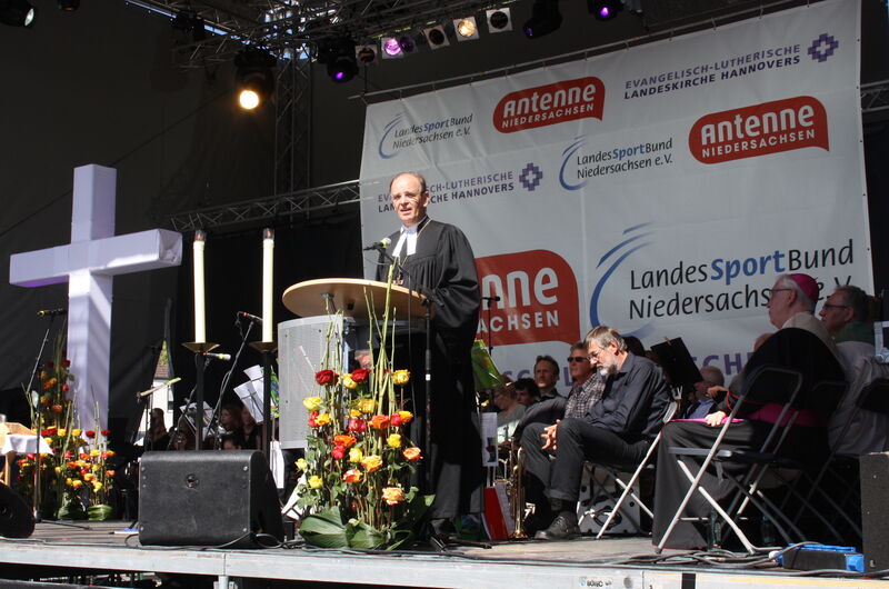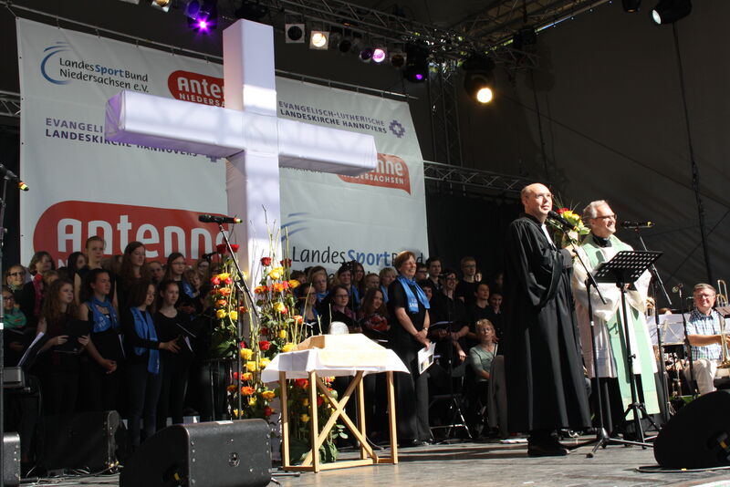 Der Gottesdienst auf der großen Bühne, die von Radio Antenne Niedersachsen, der Evangelischen Landeskirche und dem Landessportbund Niedersachsen gemeinsam bespielt wurde, war einer der Höhepunkte der kirchlichen Aktivitäten beim Tag der Niedersachsen, nachdem zuvor bereits tausende von Menschen die Kirchenmeile besucht und dem von der Landeskirche eingeladenen Superstar Bob Geldof zugejubelt hatten.