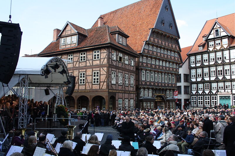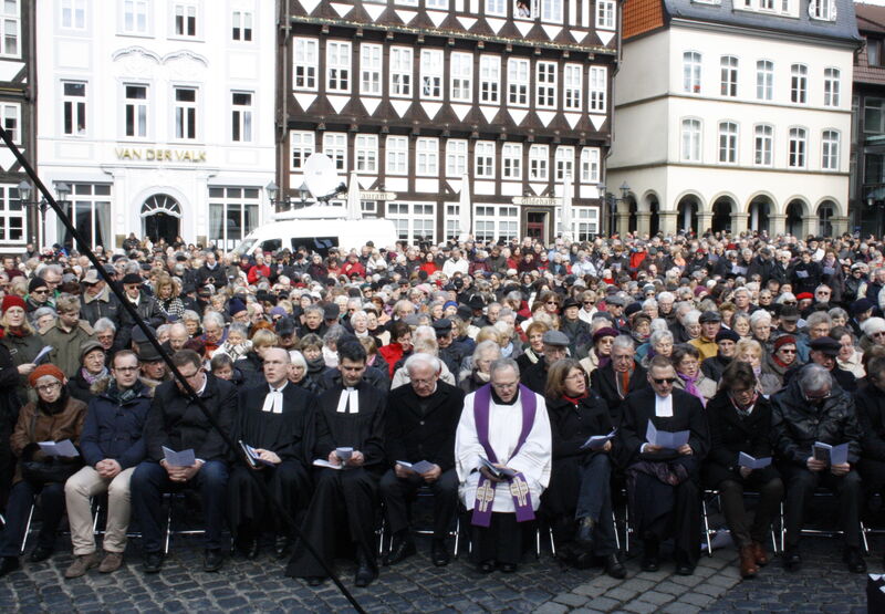 Zum großen ökumenischen Gedenkgottesdienst versammelten sich rund 1300 Menschen auf dem Hildesheimer Marktplatz. Foto: Neite