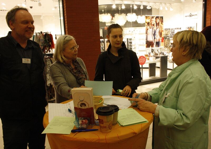 Hildesheim. Mit ihrem grünen Kittel ist Gabriele Köhler ein Blickfang im Eingangsbereich der Arneken-Galerie. Seit zwei Jahren ist sie Mitglied der Christlichen Krankenhaushilfe, besser bekannt als „die grünen Damen“. Heute macht sie beim „Speed-Dating für Ehrenamtliche“ Werbung für ihren freiwilligen Dienst. Prompt wird sie angesprochen: „Kann man da mitmachen? Ich suche nämlich etwas, wo ich mich engagieren kann.“