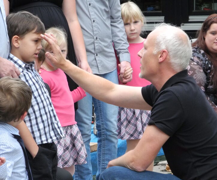 Hildesheim. Zwölf Kinder und Erwachsene sind am Samstagnachmittag im Garten der Ev. Kindertagesstätte St. Thomas in Drispenstedt getauft worden. Die rund 100 GottesdienstbesucherInnen feierten mit Pastor Jochen Grön ein fröhliches Tauffest unter freiem Himmel. Mit nackten Füßen und umringt von Eltern und Paten, stiegen die Täuflinge in eine mit Wasser gefüllte Sandkiste, um die Taufe zu empfangen. Sahrina-Mia Biesel, Stina-Lilly Biesel, Adrian Dortmund, Alexander Langlitz, Leonardt Niedaszkowski, Justin Ohlendorf, Devin Raue, Levin Raue, Alina Schütz, Tatjana Schütz und Kilian Schummer wurden bei sonnigem Spätsommerwetter von Pastor Jochen Grön getauft.