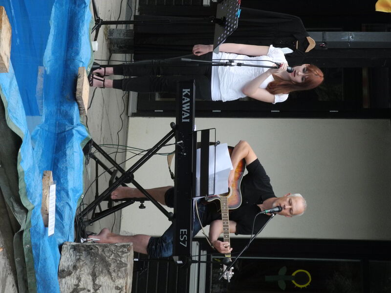 Pastor Jochen Grön begleitete Sängerin Kim Trouw (16) auf Keyboard und Gitarre zu Popsongs und kirchlichen Stücken.