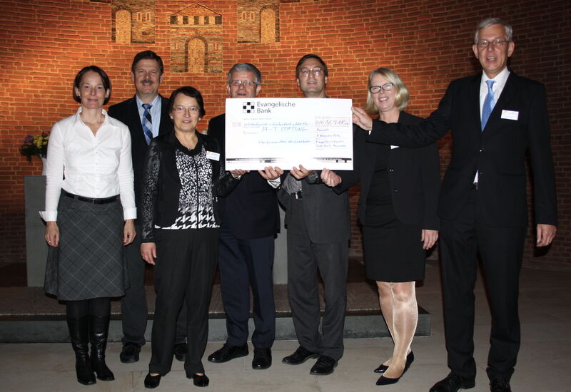 Aktuell ist das finanzielle Polster der Stiftung noch einmal deutlich dicker geworden. Die Landeskirche hat zum vierten Mal eine so genannte Bonifizierungsaktion durchgeführt: Für jede drei Euro, die eine Stiftung an neuen Zuwendungen einwarb, gab die Landeskirche noch einen Euro hinzu. Die A – T-Stiftung sammelte in zwei Jahren über 50.000 Euro, so dass der landeskirchliche Stiftungsbeauftragte Martin Käthler nun einen großzügigen Scheck mitbrachte.