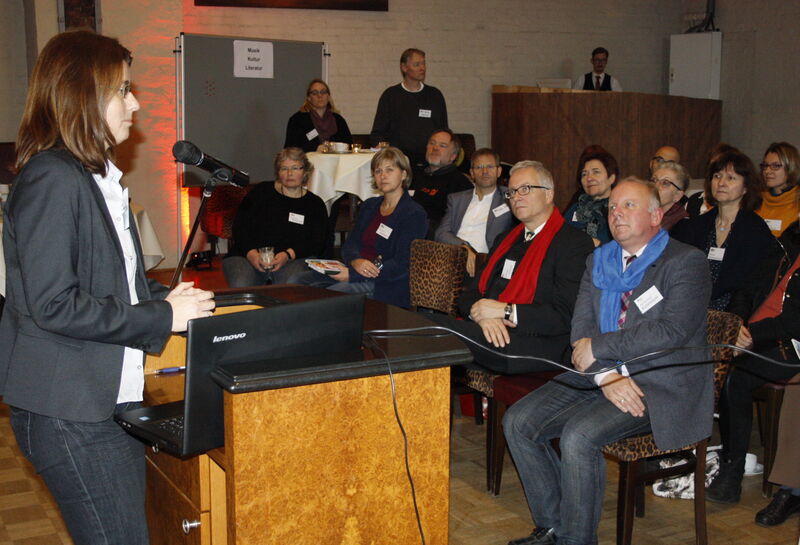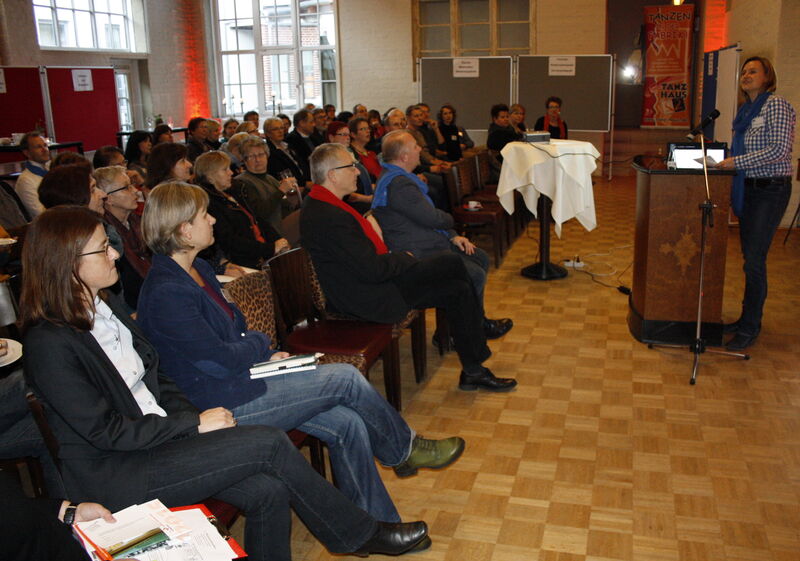 60 VertreterInnen unterschiedlichster Einrichtungen wie Kitas, Schulen, Uni, Kirchenkreisjugenddienst, Diakonisches Bildungszentrum oder Familienbildungsstätte sowie einzelne Akteurinnen und Akteure sind der Einladung ins Tanzhaus Buresch gefolgt. Vor allem geht es darum, neue Kontakte zu knüpfen. Nicht als einfaches Hallo, sondern in Verbindung mit möglichst konkreten Ideen für Kooperationen und Projekte. Beim „Marktplatz“, den das Duo „Fräulein Zugvogel“ musikalisch untermalt, wird diese Begegnungsgelegenheit reichlich genutzt.