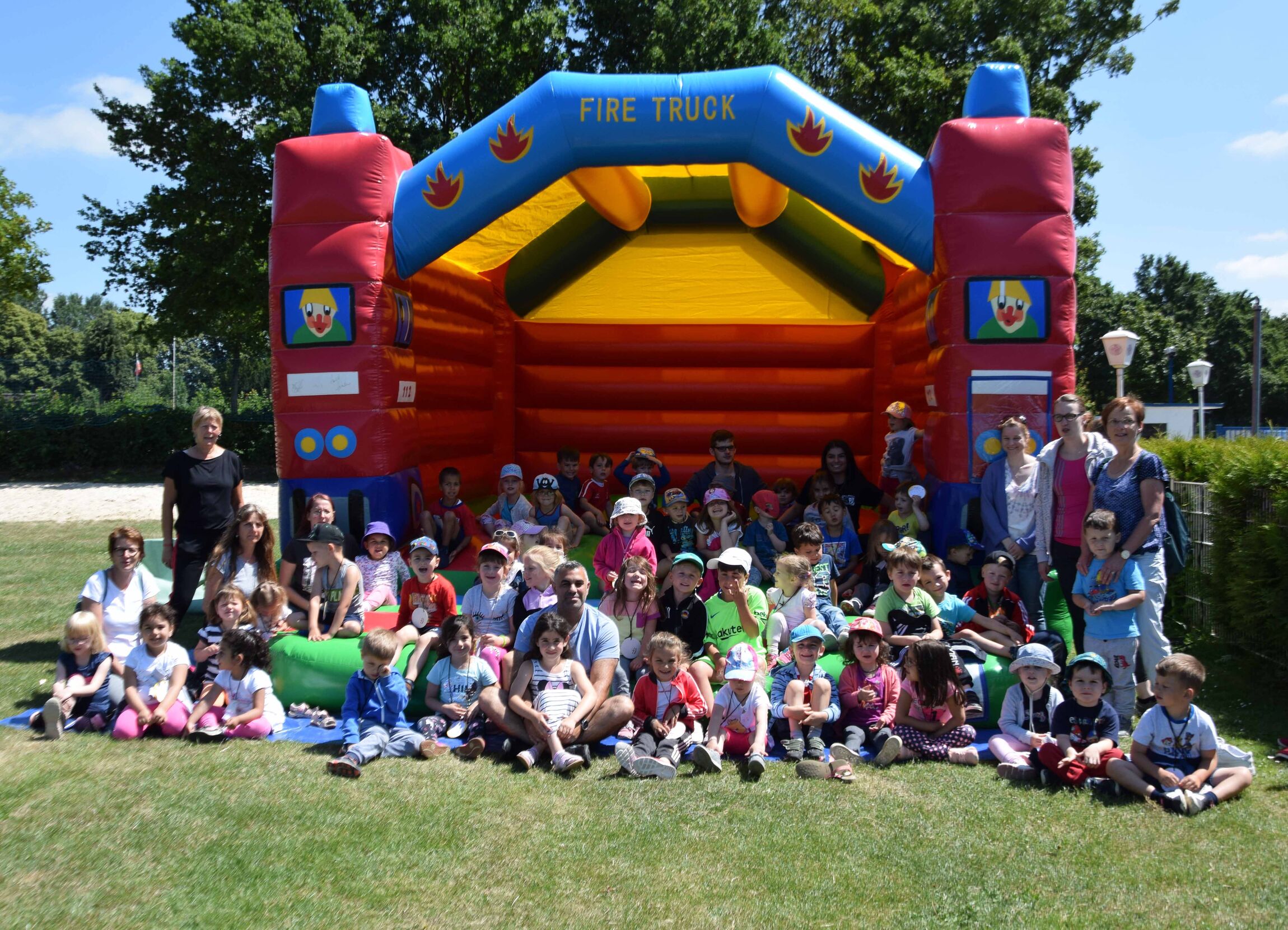 Sportlicher Leiter Matteo Menchise stellte als Gastgeber der Kita die Umkleiden und sanitären Anlagen zur Verfügung und blies außerdem spontan eine Hüpfburg auf, die eigentlich für eine andere Veranstaltung schon auf dem Gelände war. Die Freude war groß, so Kita-Leiterin Marion Wegener, die aber auch nicht verschweigt, dass manche der Mädchen und Jungen weniger glücklich waren, den Hin- und Rückweg von der Kita an der Eulenstraße zum Vereinsgelände hinter der Bahnschranke zu Fuß zurücklegen zu müssen. „Aber auch das gehört zu sportlicher Betätigung dazu.“ Christina Steffani-Böringer