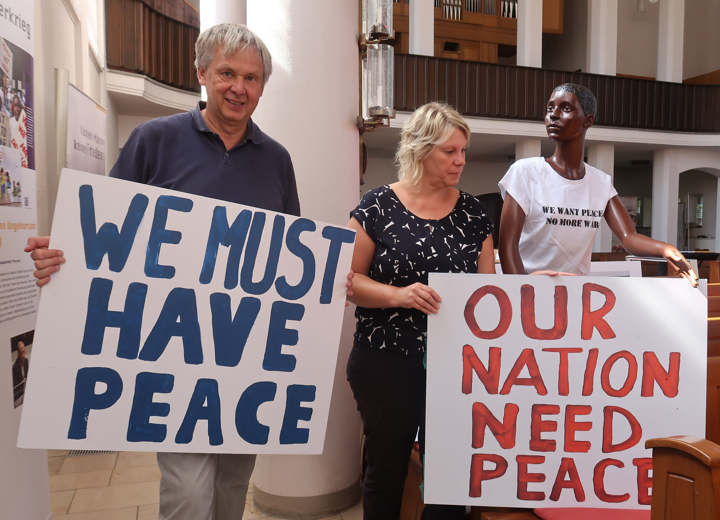 Die Ausstellung „Frieden geht anders – aber wie?“ arbeitet mit Bannern, Texten und Bildern, ergänzt durch kurze Videos. Sie bleibt bis zum 22. September in der Martin-Luther-Kirche aufgebaut und ist jeweils sonntags von 15 bis 18 Uhr sowie im Anschluss an die Gottesdienste geöffnet. Schulklassen und Gruppen können sich unter Tel. 05121/16 75 34 zu einer Führung anmelden. Für Gruppen hat das Landesjugendpfarramt außerdem Material ausgearbeitet, das während der Besichtigung oder auch zur Vor- und Nachbereitung verwendet werden kann.