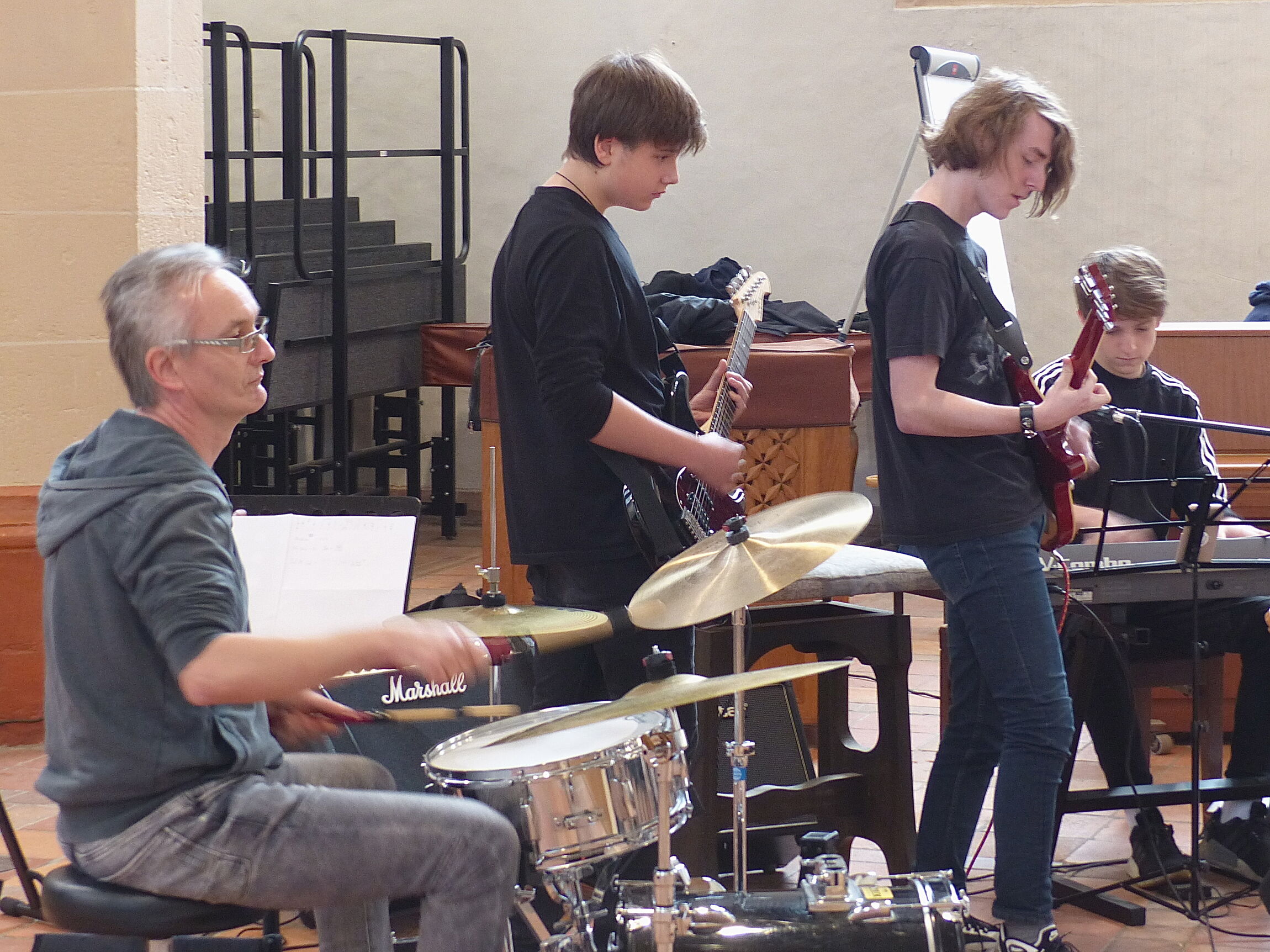 Auch die Klimabewegung hält Einzug im Programm: „Konfis 4 Future“ ist der Titel eines der Workshops, in dem sich die Teilnehmenden kreativ austoben und sich die eigene Handlungsfähigkeit bewusst machen. Die Jugendlichen sind vor allem aufgeregt und stürzen sich mit viel Interesse auf das bunte Programm. Zwischendurch liefern Nudeln und Kuchen die nötige Energie, um am Ball zu bleiben.