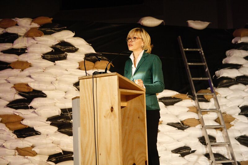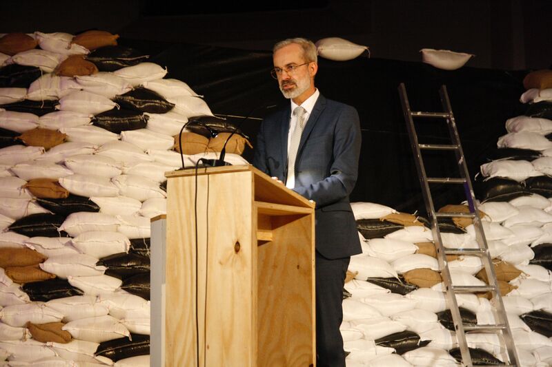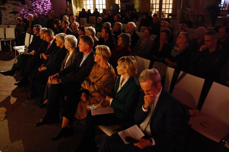 „Wieviel Vielfalt brauchen wir“ hieß die Titel-gebende Frage des Abends. Superintendent Mirko Peisert machte vor allem zwei Herausforderungen aus. Er deutete auf das neue Bühnenbild im Literaturhaus – Sandsäcke, die den Damm eines Flusses schützen. Peisert hatte dabei zunächst eine andere Assoziation: „Als ich das Bühnenbild sah, ist mir eigentlich als erstes das Stichwort ,Festung Europa' in den Sinn gekommen.“ Abschottung statt Vielfalt. Und dann der Anschlag von Halle. Peisert: „Das gibt der Frage nach Vielfalt noch einmal eine ganz neue Brisanz und Aktualität.“
