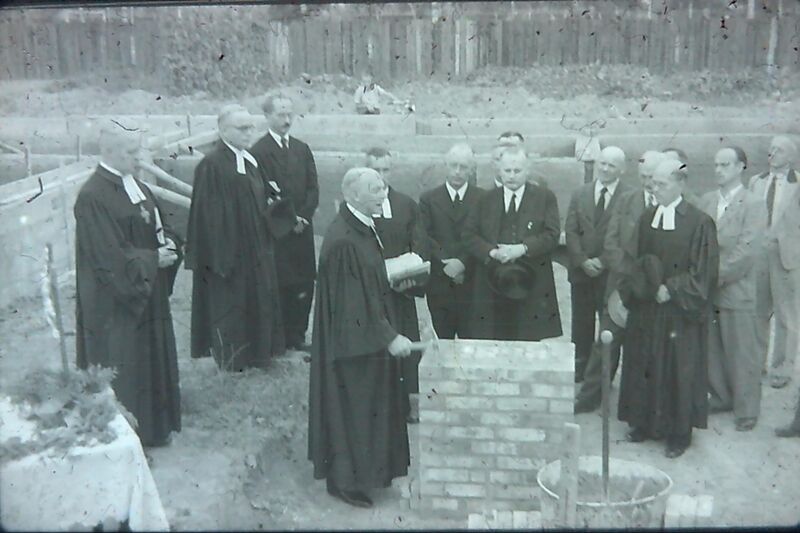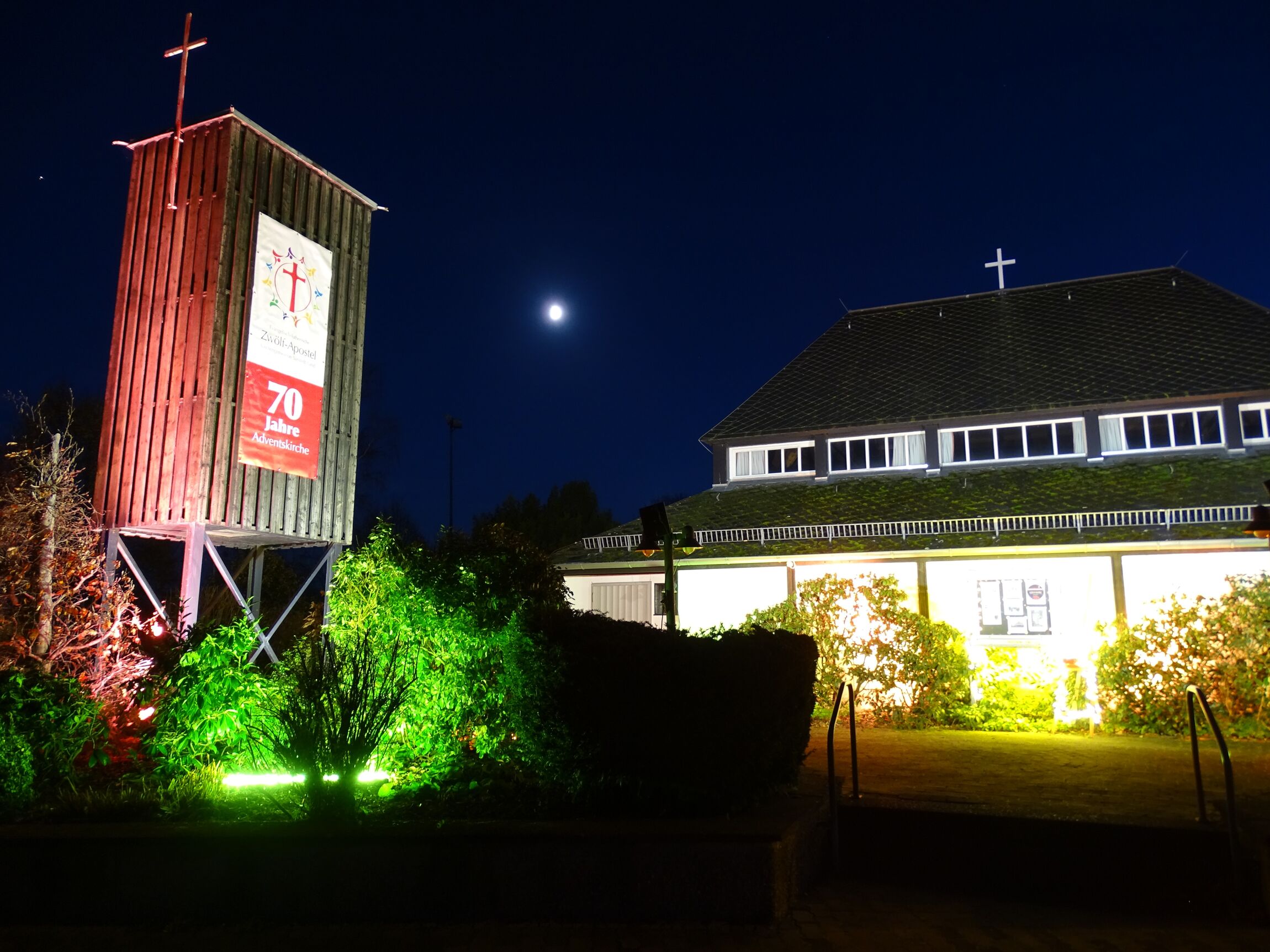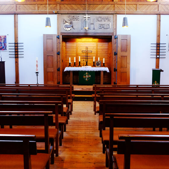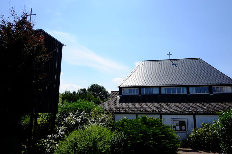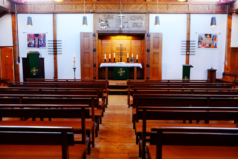 1950 ging es dann ganz schnell: Erster Spatenstich und Grundsteinlegung im August, Richtfest im Oktober, Einweihung am 3. Dezember. Bei dem Bau handele es sich um ein „Notkirche Typ D“ genanntes Modell, weiß Ellen Stock, die von klein auf Gemeindemitglied war, im Kirchenvorstand gewirkt hat und heute den Gemeindebrief austrägt. Um die 20 Kirchen dieser Art seien wohl in Deutschland errichtet worden. Die Idee des Gebäudes, inzwischen ein Baudenkmal, ist heute wieder ganz aktuell: Der Altar kann hinter Holzläden verborgen werden, die Bänke lassen sich beiseite räumen, und schon ist der Raum in einen Gemeindesaal verwandelt. Lange Zeit wurde sonntags in dieser Weise für den Nachmittagskaffee angepackt und umgeräumt. Seit 2005 steht aber nebenan ein moderner, heller Gemeindesaal.