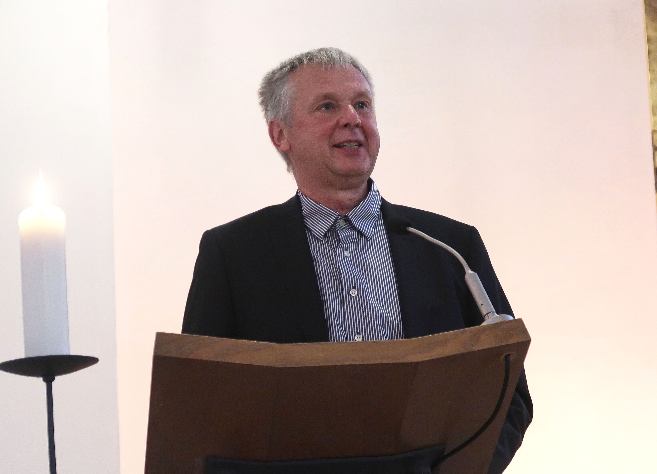 Christsein bedeute, der Finsternis nicht das letzte Wort zu lassen, sagte Superintendent Mirko Peisert in seiner Einführungsrede und bezog sich dabei auf Zeit-Feuilletonistin Elisabeth von Thadden. Es bedeute zu helfen, zu protestieren, an den Frieden zu glauben. Der Satz passe zum Wochenspruch aus einem Brief des Apostels Paulus: „Überwinde das Böse mit Gutem“. Und er passe zu der Auffassung von Kirche, für die Pastor Krügener stehe: Einer Kirche des Friedens und der Verantwortung, einer politischen Kirche, die sich einmischt, und einer Kirche der Nachhaltigkeit.