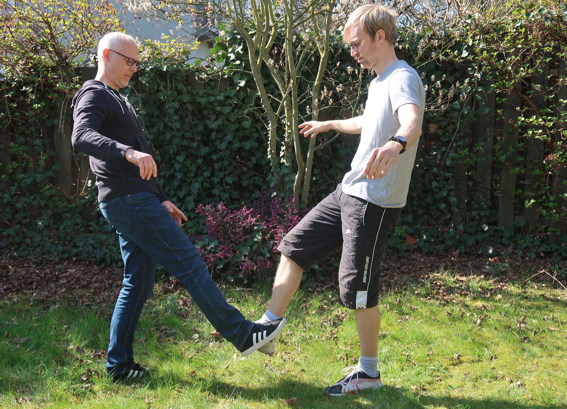 Pastor Grön und Vikar Krüger geben sich natürlich nicht die Hand, stattdessen stupsen sie abwechselnd ihre Schuhe aneinander, kurzzeitig dafür auf einem Bein balancierend. Mit den Videobeiträgen, erklärt Pastor Grön, wollten er und seine Gäste zeigen, dass die Kirche noch immer für die Menschen da ist. Die höchstens fünfminütigen Filme sollen eine aufmunternde, lebendige Botschaft an die Gemeinde sein. Für die gibt es auf der Homepage im Wechsel mit „Zu zweit bei Martin-Luther“ auch Wohnzimmerandachten, außerdem können Gebete und Fürbitten in die Betbox vor der Kirche eingeworfen werden.