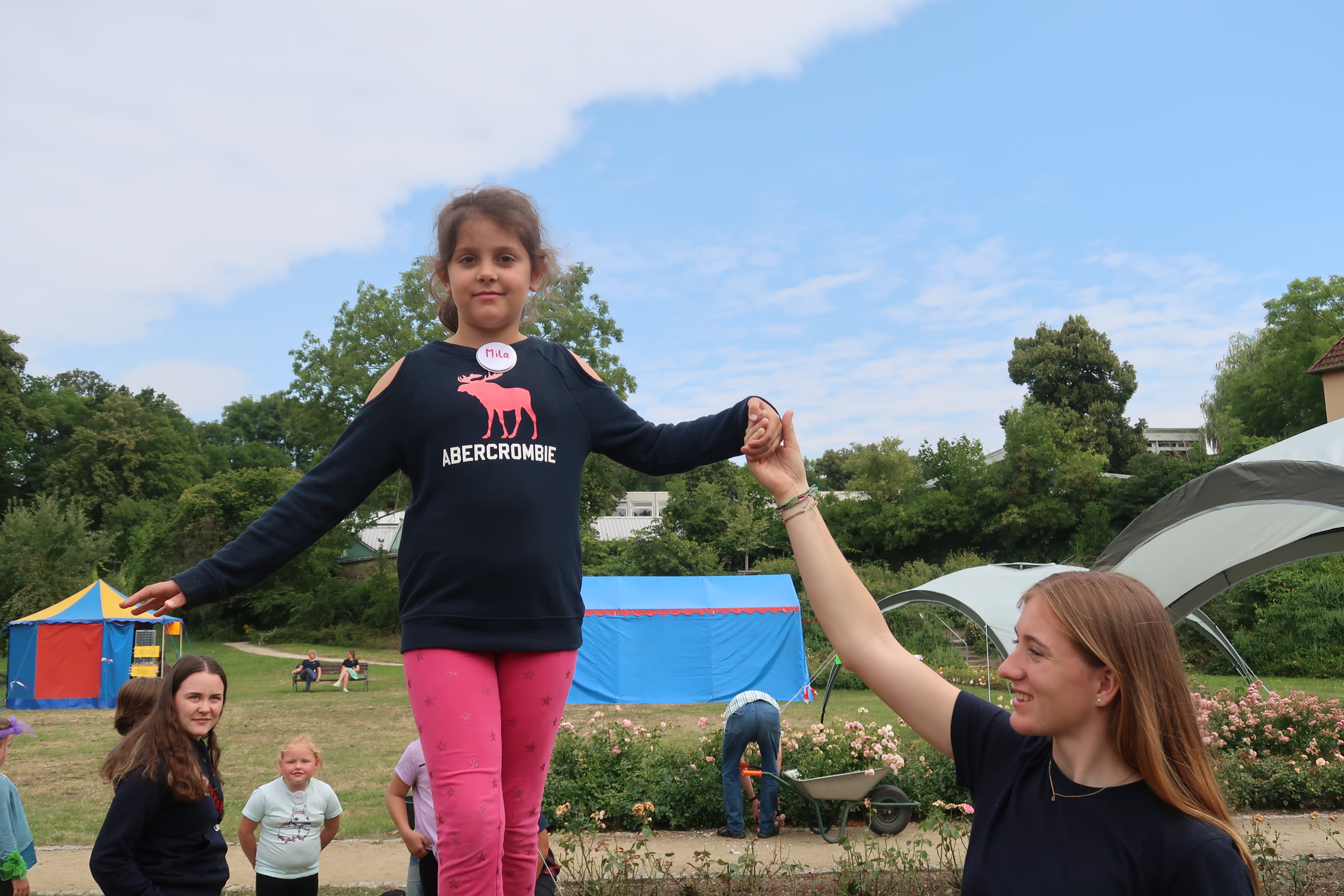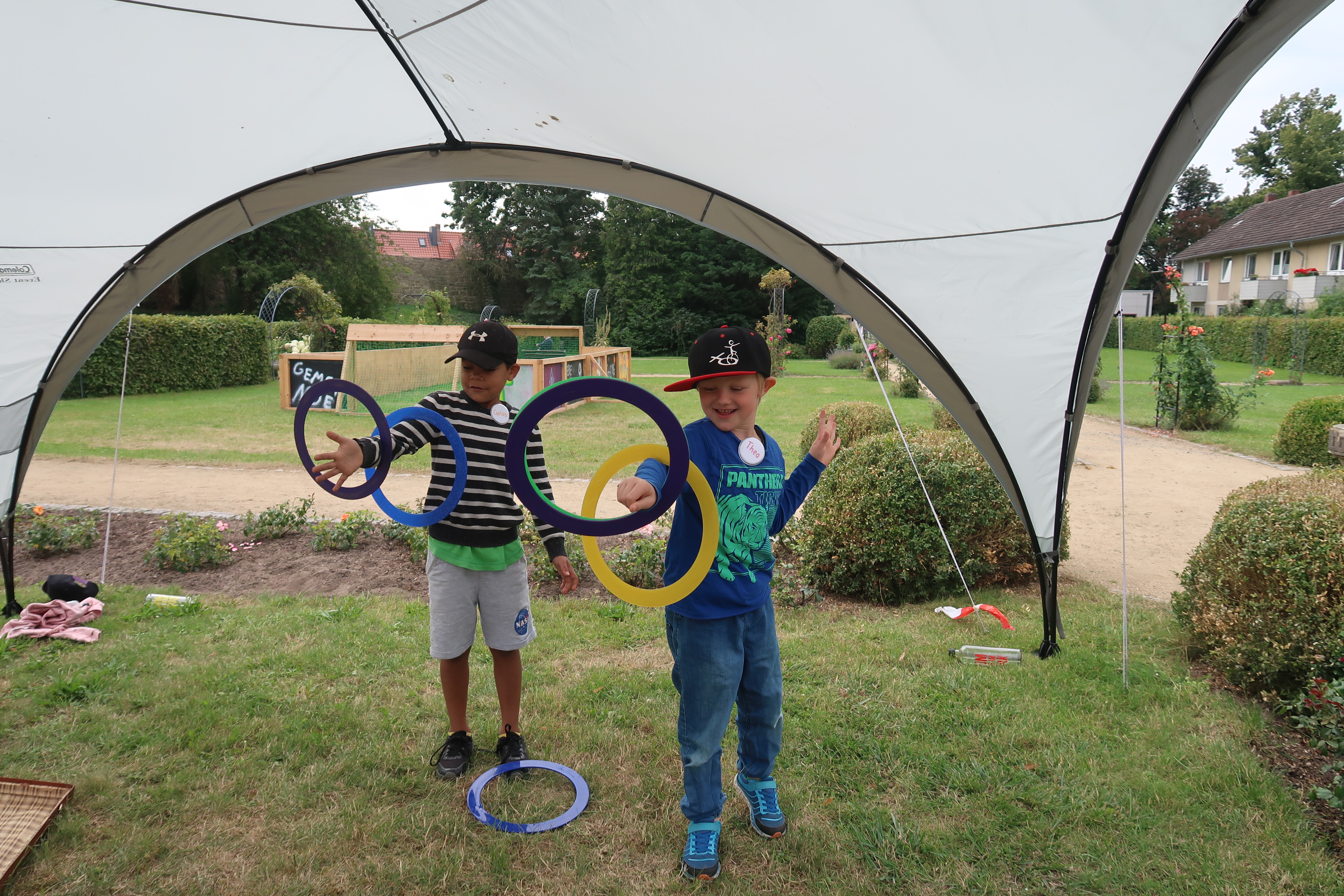 Hildesheim. Der sechsjährige Carlos und sein neuer Freund Theo lassen Ringe an ihren Armen wirbeln. Mit zweien sieht das schon sehr gekonnt aus – nächste Stufe sind drei Ringe gleichzeitig, erklärt Theo. Zeit zum Üben ist ja noch. Eine Woche lang tummeln sich 50 Kinder zwischen sechs und zwölf Jahren beim „Sommer im Park“ im Magdalenengarten, der mit einer Kollektion unterschiedlicher Zelte ein ungewohntes Bild bietet. Vereinzelte Spaziergängerinnen schauen wohlwollend auf das bunte Treiben.